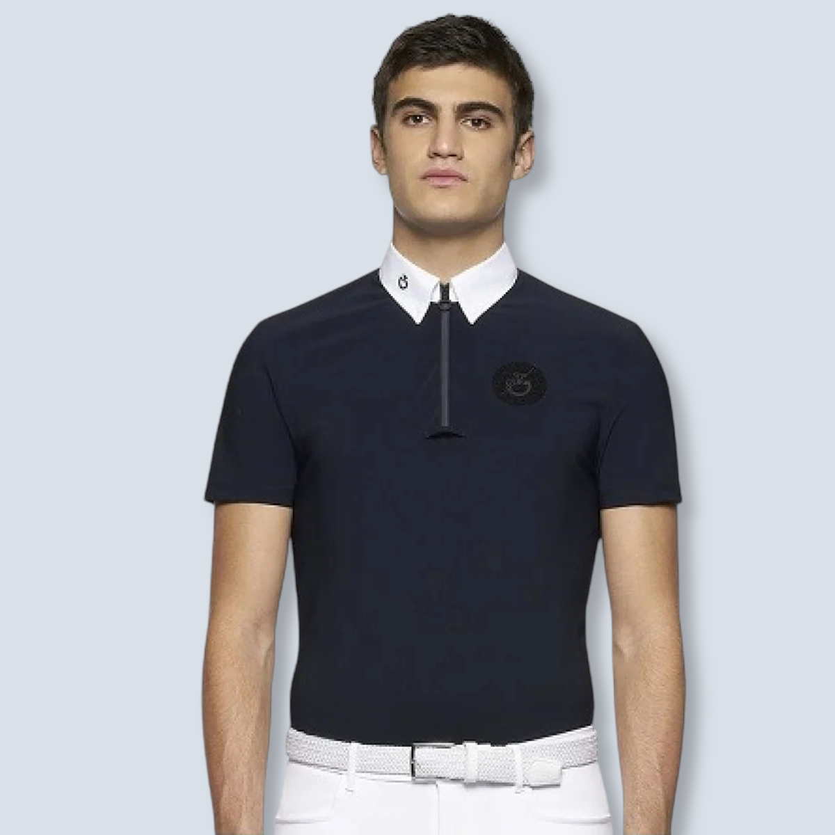 CT S/S Perforated Jacquard Jersey Zip Competition Shirt- Cavalleria