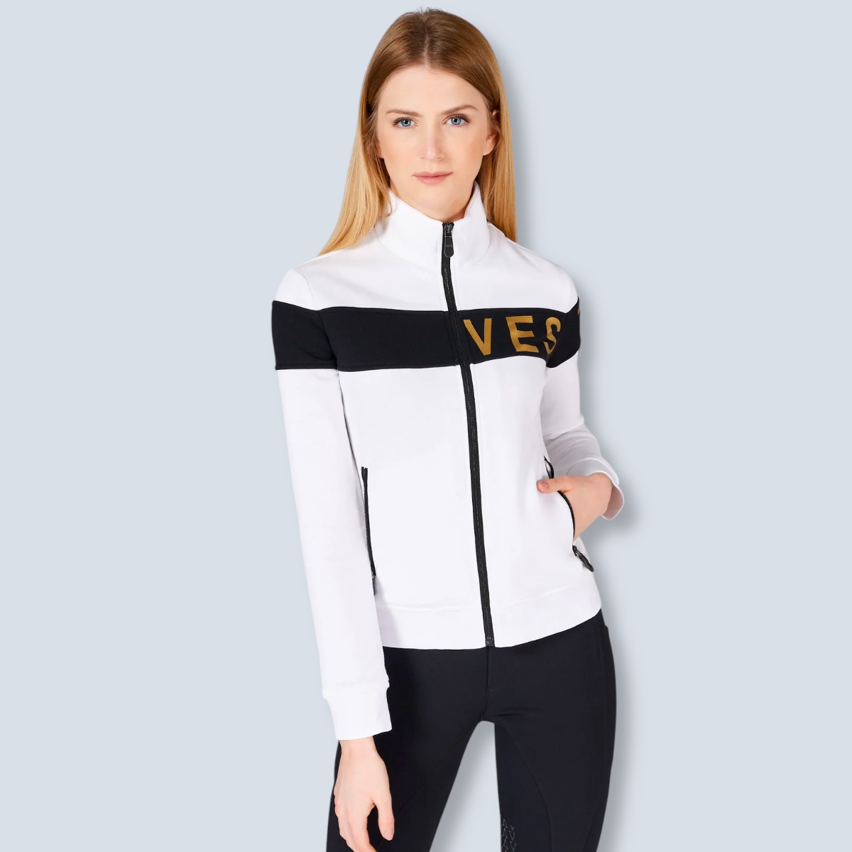 Sudadera o prenda de abrigo ligera para mujeres fabricada por la marca italiana de lujo ecuestre Vestrum. Está diseñada para ofrecer libertad de movimiento, siendo ideal para el entrenamiento ecuestre en climas templados o como capa intermedia.