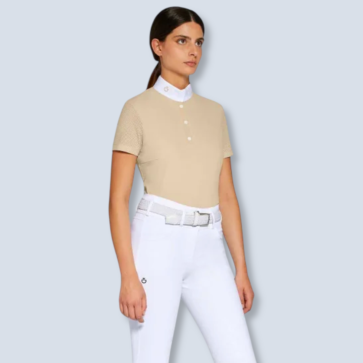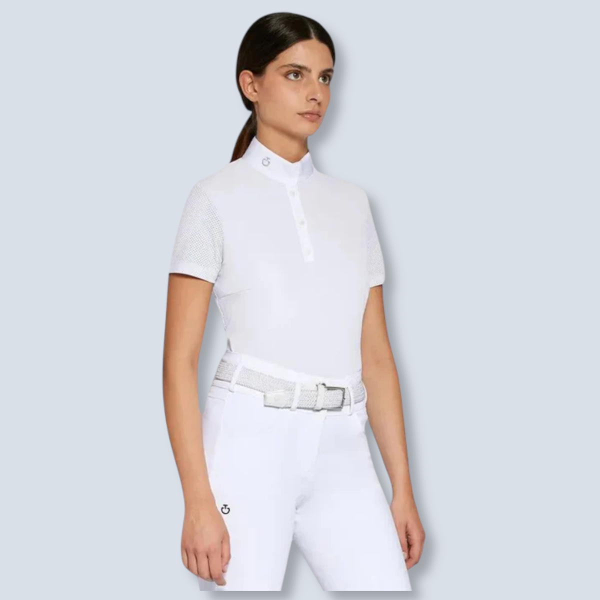 La CT Perforated Jersey S/S Button Competition Polo de Cavalleria está diseñada para jinetes que buscan rendimiento y elegancia. Su tejido técnico con perforaciones estratégicas garantiza ventilación, mientras que el cierre de botones y el corte ergonómico aseguran ajuste perfecto y libertad de movimiento durante la competición.