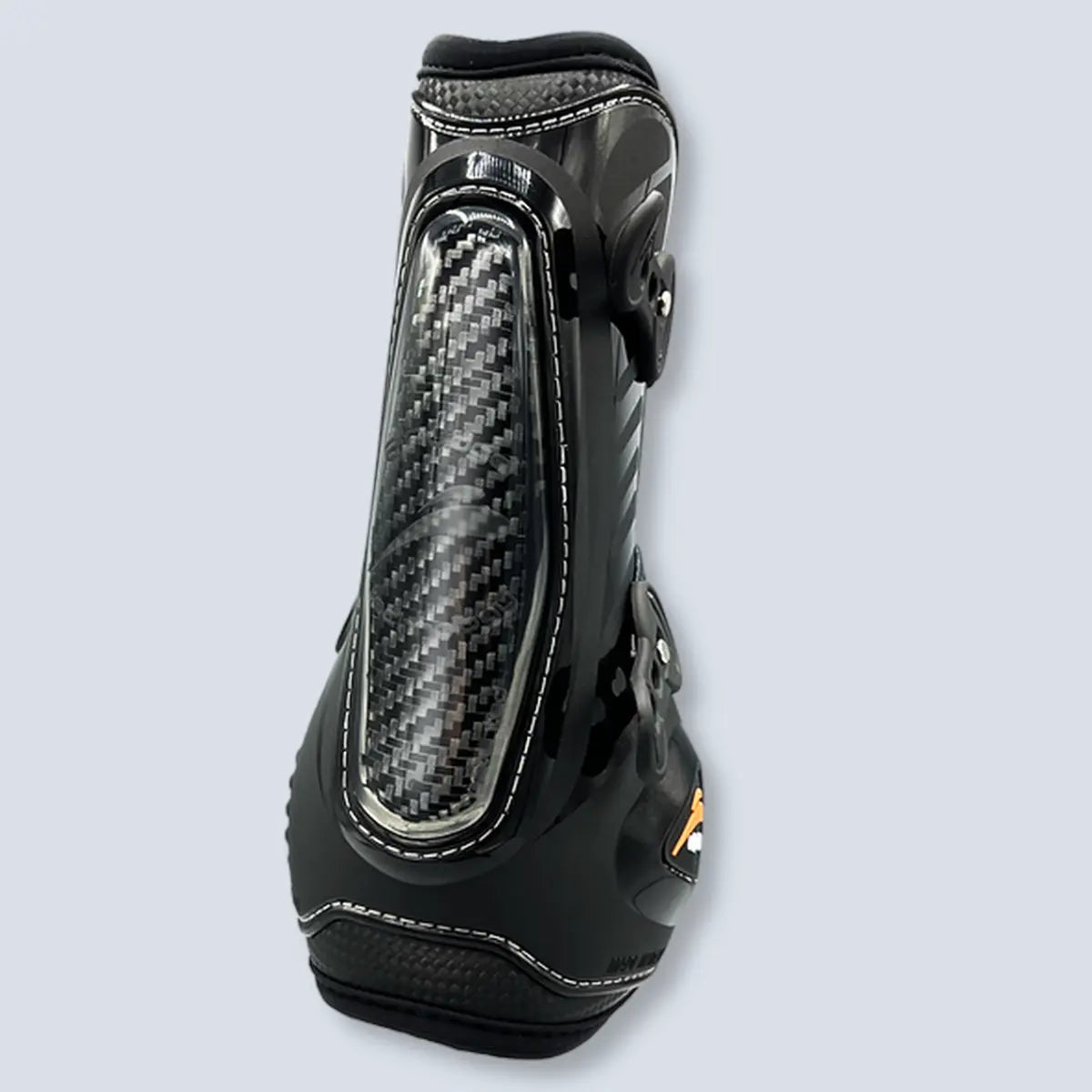 Los e Carbon Shock Front son protectores delanteros que combinan la ligereza del carbono con una absorción superior de impactos, brindando máxima protección a los cascos y tendones del caballo. Su diseño ergonómico asegura un ajuste seguro y cómodo, ideal para entrenamientos intensos y competencias exigentes. Perfectos para caballos que necesitan seguridad, rendimiento y confort en cada salto.